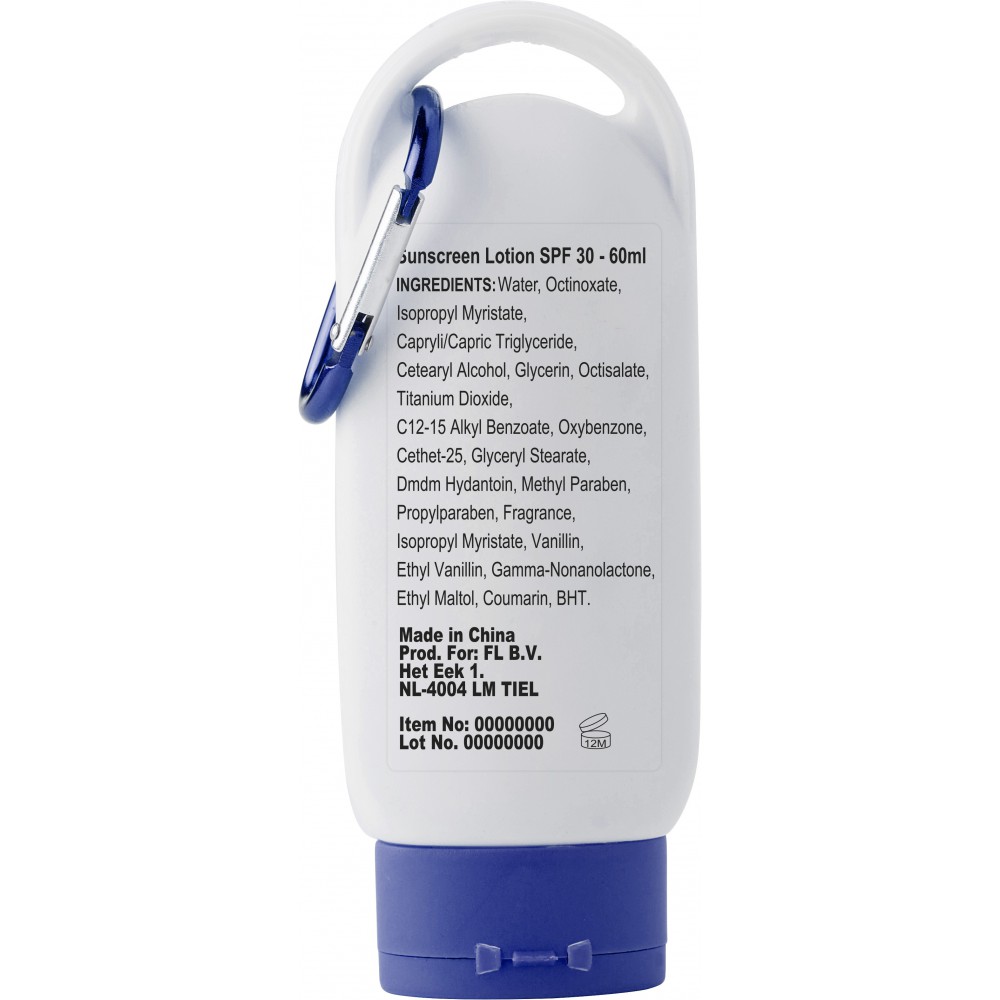 Naptej SPF 30 védelemmel, karabinerrel, színben illeszkedő tetővel. 60 ml.