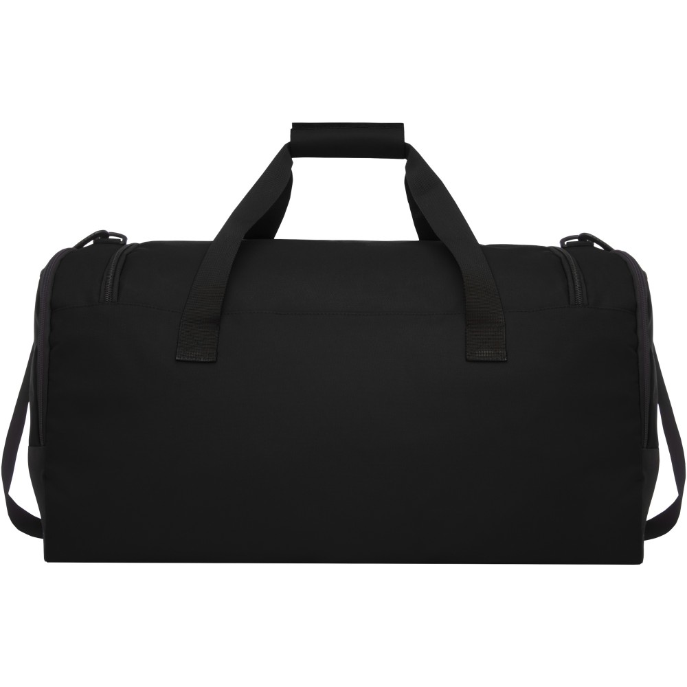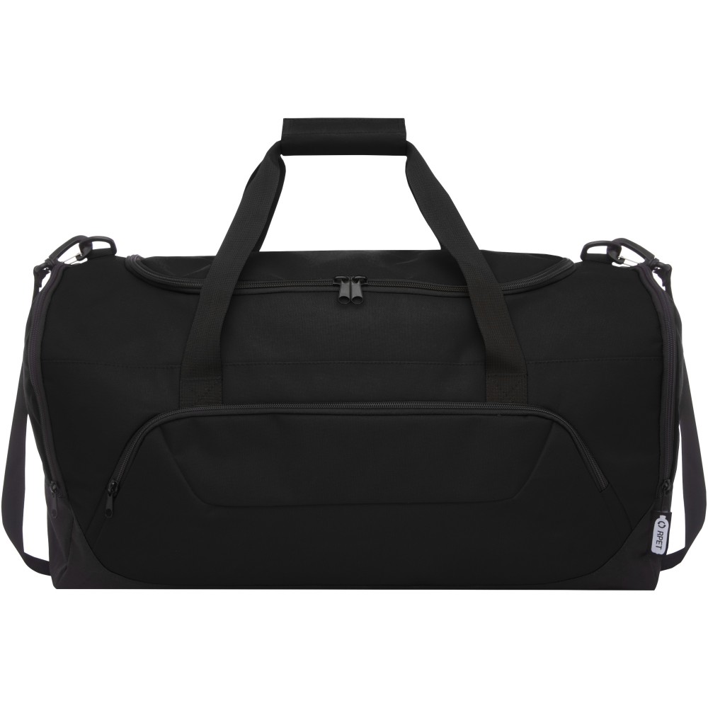 Erős táska 100% -ban újrahasznosított műanyagból, amellyel hozzájárul a műanyag hulladék csökkentéséhez. Nagyméretű fő rekesz és első cipzáras zseb, párnázott vállpánt és párnázott fogantyú. Körülbelül 27 műanyagpalack újrahasznosításával készült. 600D poliészter.
