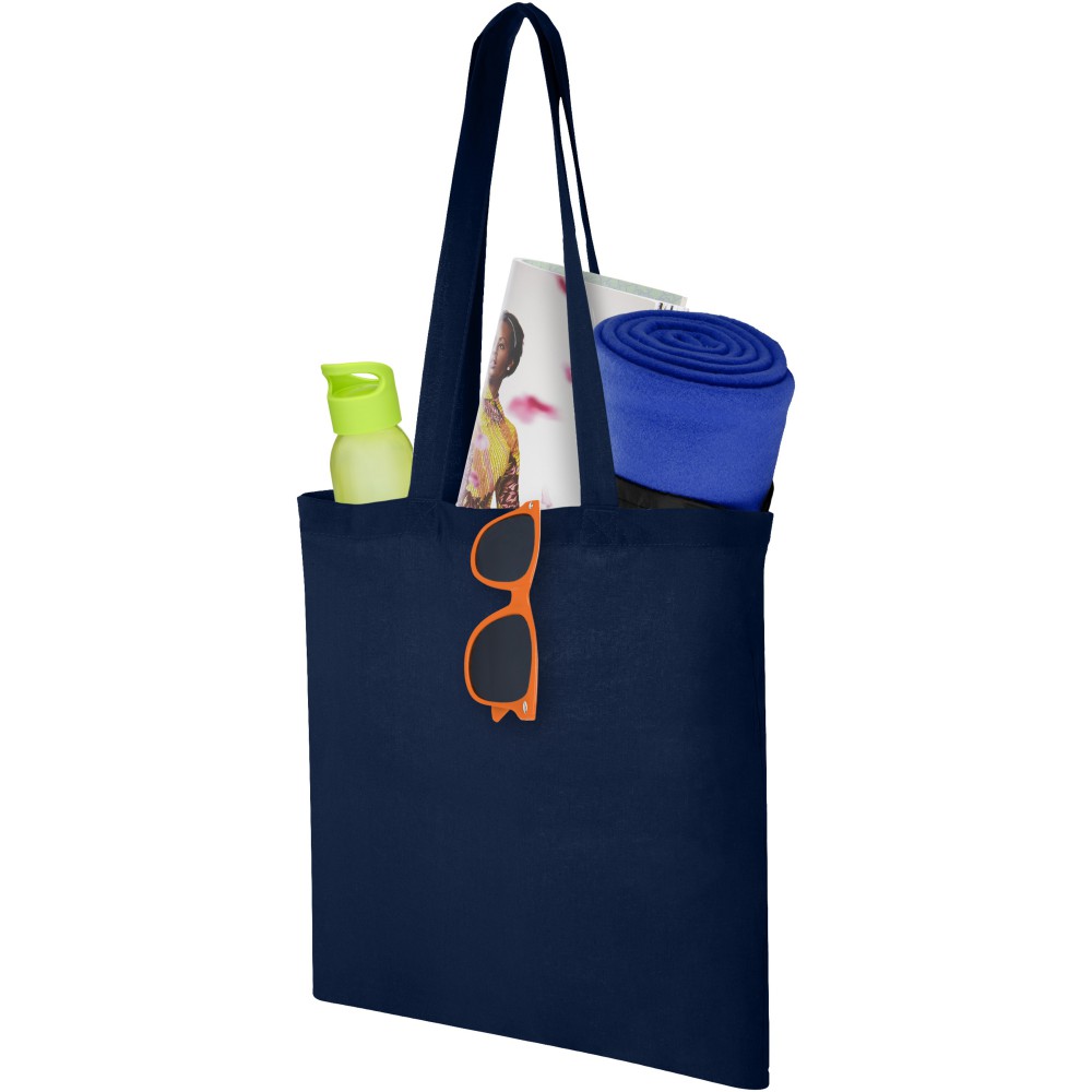 A Carolina táska könnyű és pénztárcabarát, így kiválóan alkalmas reklámhordozó rendezvényeken, konferenciákon vagy kiállításokon. A nagy fő rekesz elegendő helyet biztosít a könnyű tárgyak tárolására, a 30 cm-es vállpántok pedig megkönnyítik a táska szállítását. Fülek magassága 30 cm. 100 g/m2 pamut.