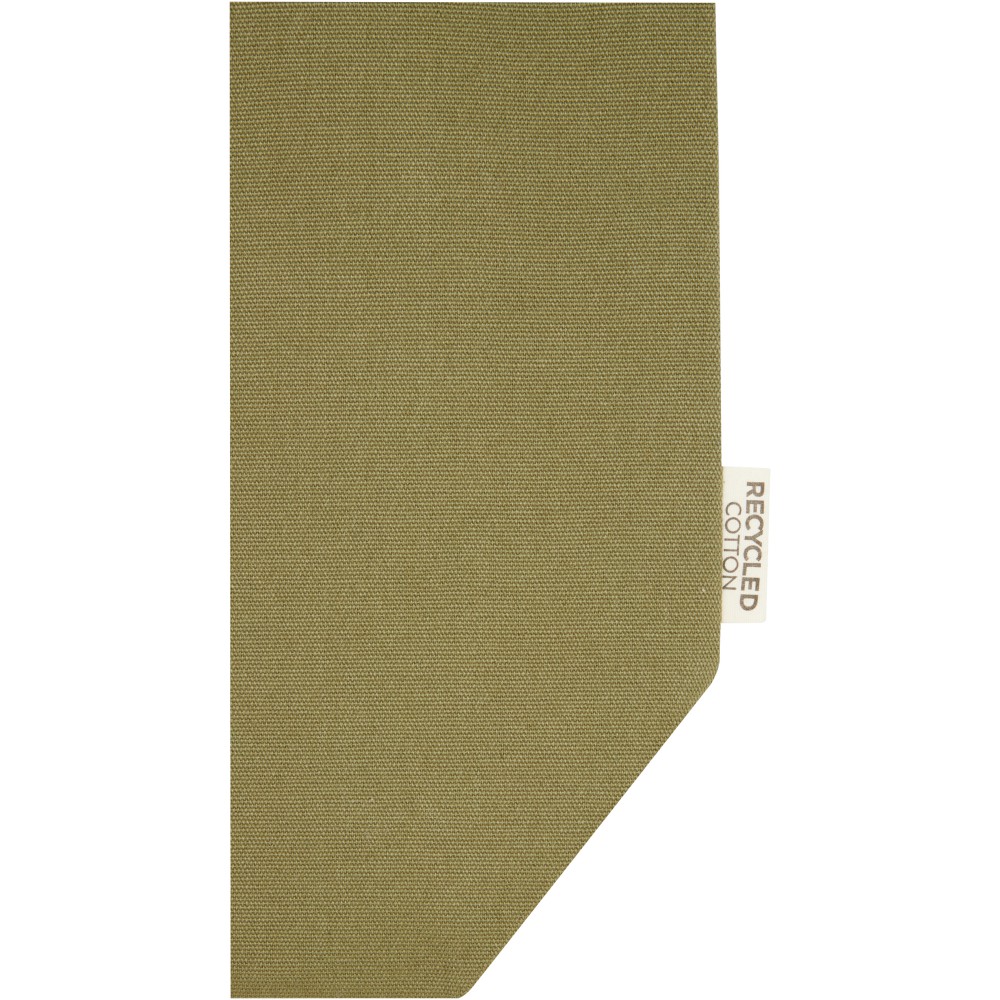 A táska GRS tanúsítvánnyal rendelkező újrahasznosított vászonból és GRS tanúsítvánnyal rendelkező RPET béléssel készült. Ez a sokoldalú táska egy bélelt, 15 -os laptoprekesszel és két belső tartóval rendelkezik a telefon, a pénztárca vagy a kiegészítők számára, valamint könnyű gombos záródással és kényelmes pamut fogantyúkkal. Fémlapja gravírozható.