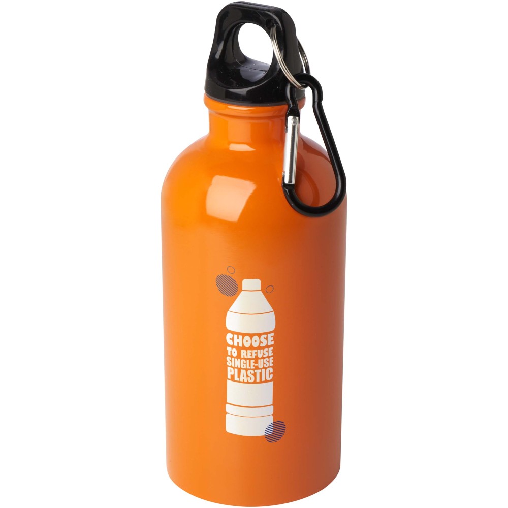 Mindig maradj hidratált ezzel a tartós, mégis könnyű palackkal, amely RCS tanúsítvánnyal rendelkező újrahasznosított rozsdamentes acélból készült. Tökéletes társ sportoláshoz, napi kirándulásokhoz vagy az irodában való használatra. Az egyfalú Oregon palack csavaros kupakkal rendelkezik, és bőséges helyet kínál bármilyen logó nyomtatására. Rögzítsd a mellékelt karabinert (mászásra nem alkalmas) biztonságosan egy táskához, hogy ne vesszen el. Űrtartalom: 400 ml.