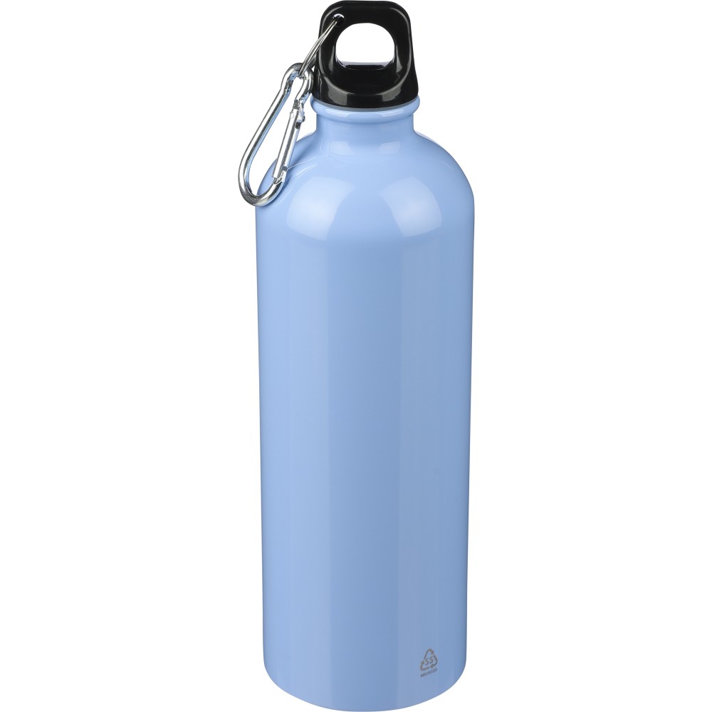 Újrahasznosított rozsdamentes acélból készült 750 ml-es szimplafalú kulacs PP kupakkal és alumínium karabinerrel. Az újrahasznosított anyagra utaló logó a palackra van gravírozva. Mosogatógépben nem tisztítható.