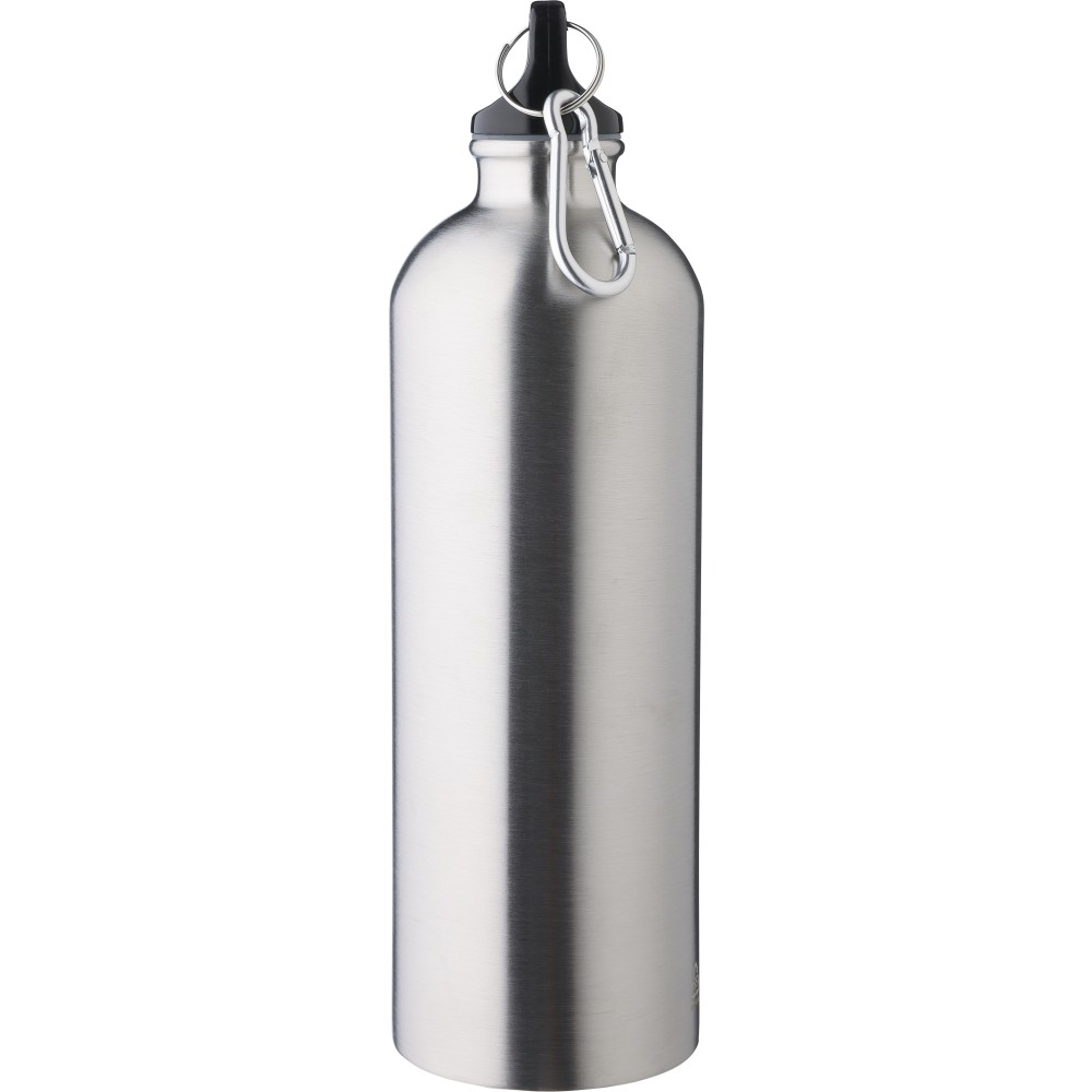 Újrahasznosított rozsdamentes acélból készült 750 ml-es szimplafalú kulacs PP kupakkal és alumínium karabinerrel. Az újrahasznosított anyagra utaló logó a palackra van gravírozva. Mosogatógépben nem tisztítható.